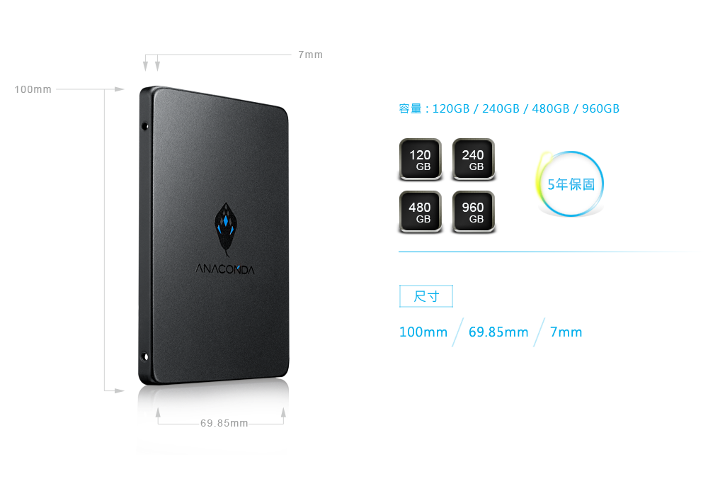 容量 : 120GB / 240GB / 480GB/ 960GB